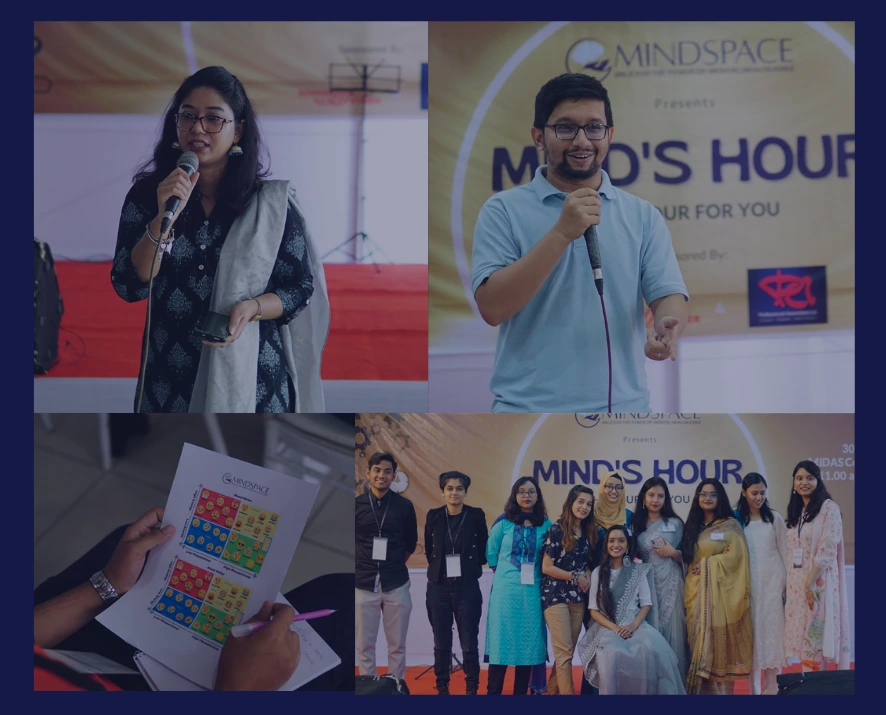 Mindspace is a multi-faceted organization working towards ensuring awareness regarding mental health through content generation on social media platforms, 'Moner Golpogulo', a podcast aiming at normalizing conversation surrounding mental health, 'Vent', a psychological crisis hotline service, and many more projects to come in the future.